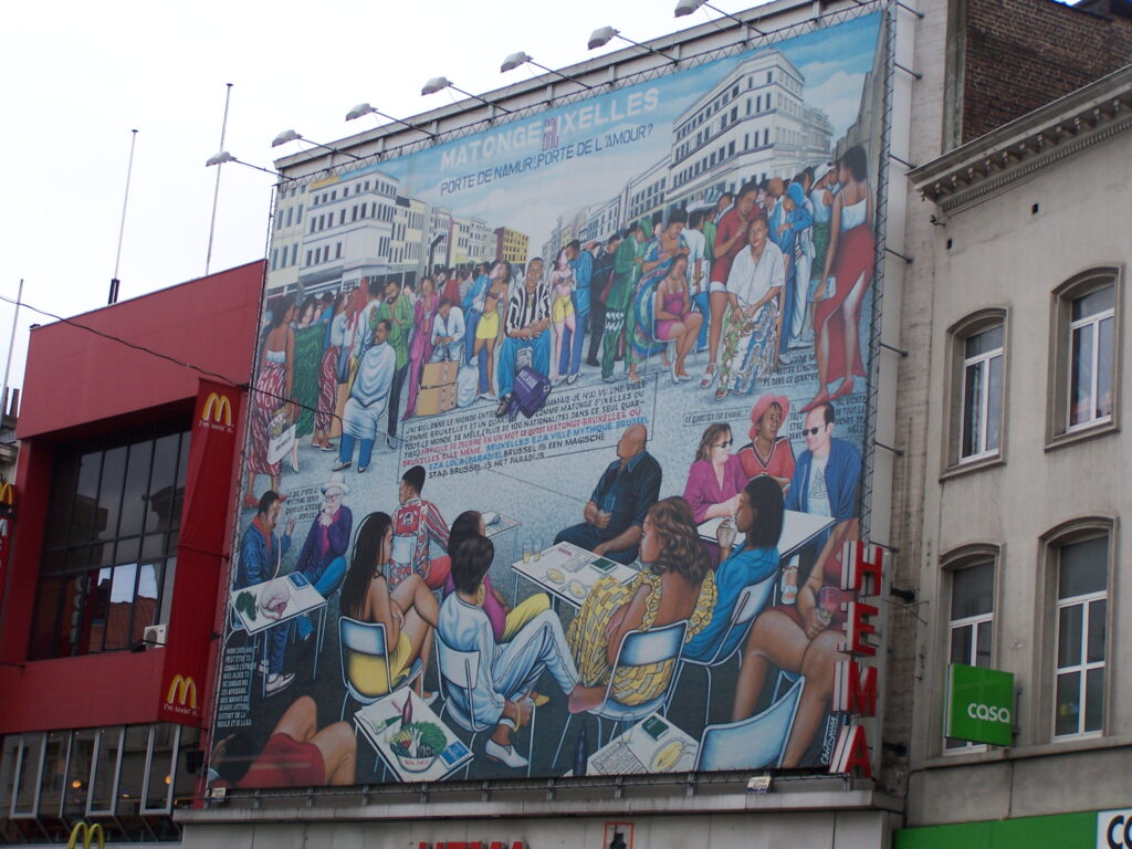 Sur son parcours, la place Flagey marque une transition naturelle : après avoir laissé derrière soi Delta, l’ULB et Buyl, on profite du décor apaisé des Étangs avant de remonter plus loin vers le quartier Saint-Boniface et la Porte de Namur : un véritable pivot. Ici, on change clairement d’échelle : c’est un nœud de mouvements, de shopping, de flux piétons. Mais c’est aussi la porte d’un quartier multiculturel qui raconte Bruxelles autrement grâce à Matongé. Son nom, inspiré d’un quartier de Kinshasa, est devenu synonyme d’une ambiance vivante : salons, boutiques, saveurs, musiques, rencontres… On y vient pour acheter, manger, découvrir et pour sentir une ville qui se mélange et s’assume.
