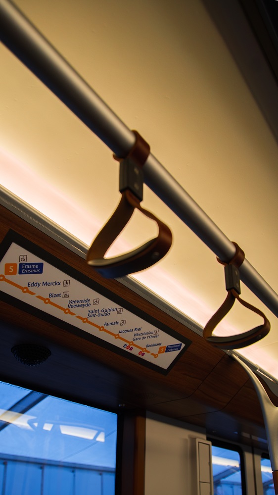 L’intérieur aussi est élégant. “Nous avons visé la qualité. Grâce à l’utilisation de matériaux durables, vous avez l’impression d’être dans une voiture de luxe, sans que sa conception soit plus chère. Cela force le respect. Une grande attention a été accordée aux détails. Vous voyez à quel point les poignées sont plates ? On ne distingue aucune vis. Ou la poignée de freinage d’urgence ? Regardez à quoi elle ressemble dans les autres métros du monde” se réjouit Axel Enthoven.